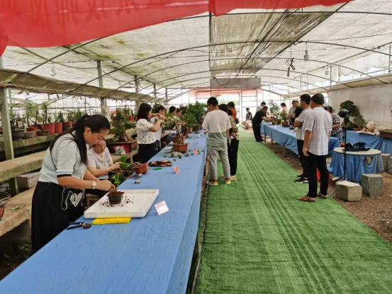 为了服务妇女参与盆景产业发展,合作社根据市场需求和妇女工作的实际需要,组织大院村周边妇女开展盆景制作、养护、种植、定型等方面的专业技能培训。通过安排有经验的老师手把手指导,传授实际操作经验,确保了参训妇女熟练掌握盆景栽培技术。此外,合作社还不定期举办技术研讨会、作品评比等活动,积极为种植生产盆景的妇女提供分享经验、交流技巧、解决问题的平台,助力了周边妇女通过盆景栽培实现了家门口就业和增收。